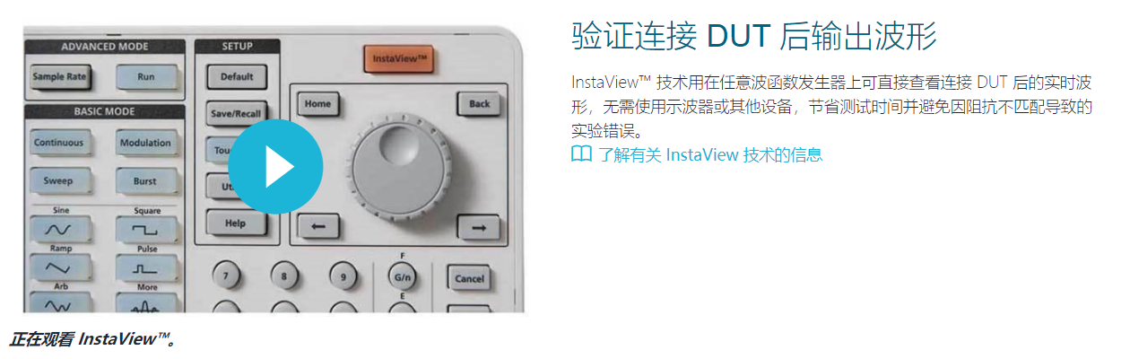 采用 InstaView? 技術的 AFG31000 系列為內(nèi)置波形發(fā)生應用程序、具有實時波形監(jiān)測功能并采用智能用戶界面的首款高性能任意波函數(shù)發(fā)生器。