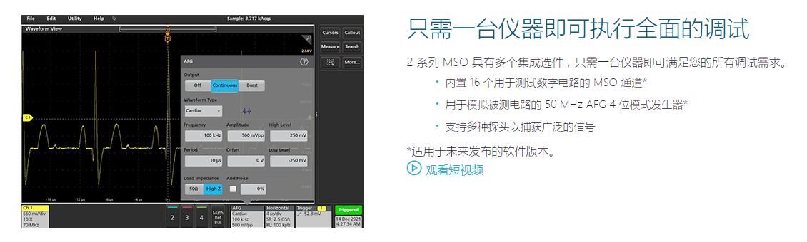 在不降低性能的情況下為您的工作臺(tái)騰出更多空間。 2 系列 MSO 的厚度只有 4CM,重量?jī)H1.8KG,是一款功能齊全的實(shí)時(shí)觸摸屏示波器,外形小巧、便攜,感覺(jué)就像平板電腦一樣。無(wú)論您的測(cè)量挑戰(zhàn)要求您前往何處(工作臺(tái)、教室或者測(cè)試現(xiàn)場(chǎng)),都可輕松攜帶它。
